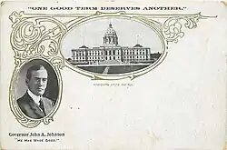 John Albert Johnson (July 28, 1861 – September 21, 1909) was an American politician. He served in the Minnesota State Senate from January 1897 to January 1901. He was the 16th governor of Minnesota from January 4, 1905, until his death on September 21, 1909 as a member of the Democratic Party.