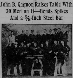 John Baptist Gagnon (October 5, 1883 – May 4, 1939) was an American strongman performer. He was 5-foot-10-inches tall, weighed 230 pounds,[1] and had 17-inch biceps. At one time, he claimed the unofficial title of "World's Strongest Man."