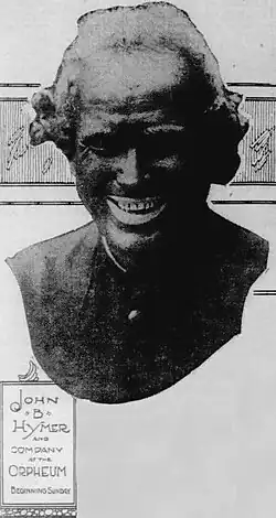 John Bard Hymer (1875 – 1953) was an American playwright and actor, from Kentucky and active in Los Angeles.[1] He was known for his blackface vaudeville and stage performances, most notably in The Clansman (1906), 'Ostler Joe (c. 1912), and the Tom Walker series which included Tom Walker in Dixie (1919).[2][3] Hymer was a prominent member of the Lakewood Theatre Colony in Maine.[4] His touring stock company was John B. Hymer and Co..