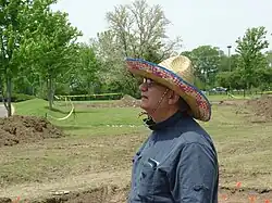 ![]() Archaeologist John B. Broster on site in Williamson County, Tennessee (May 2008) | |