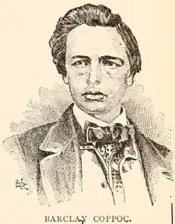 - Barclay Coppock, 22 or 23,[51]: 345 from Iowa like his brother,[13]: 24 safely reached Canada.[109] He died in the Union Army in 1861.