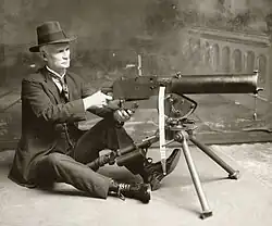John Moses Browning (January 23, 1855[1] – November 26, 1926) was an American firearm designer who developed many varieties of military and civilian firearms, cartridges, and gun mechanisms, many of which are still in use around the world.[2] He made his first firearm at age 13 in his father's gun shop and was awarded the first of his 128 firearm patents on October 7, 1879, at the age of 24.[3] He is regarded as one of the most successful firearms designers of the 19th and 20th centuries and a pioneer of modern repeating, semi-automatic, and automatic firearms.[4]