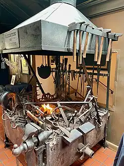 The Forge was moved to its present location on the corner of 5th Avenue and Junipero Street, when builder Hugh W. Comstock remodeled the Forge in 1940 at a cost of $1,200 (equivalent to $26,933 in 2024). Whitaker made the wrought hardware for many of the historic buildings in Carmel. He also served on the Carmel City Council for 13 years. When Whitaker left Carmel in the mid-1960s, the Forge became an artist's studio.[8]