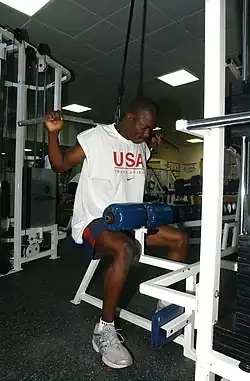![]() John Capel works out in the Naval Support Activity (NSA) Fitness Center in preparation for the 2004 Summer Olympic Games. | ||||||||||||||||||||||||