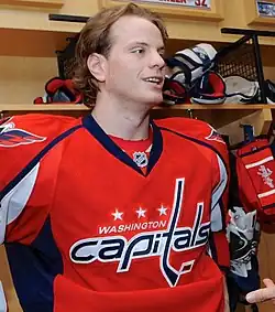 John Carlson (born January 10, 1990) is an American professional ice hockey defenseman and alternate captain for the Washington Capitals of the National Hockey League (NHL). He was drafted by the Capitals in the first round, 27th overall, in the 2008 NHL entry draft after playing a year in the United States Hockey League (USHL) with the Indiana Ice. Before reaching the NHL, Carlson played junior hockey in the Ontario Hockey League (OHL) with the London Knights and played professionally with the Capitals' American Hockey League (AHL) affiliate, the Hershey Bears. He also participated internationally for the United States in the 2010 World Juniors and 2014 Winter Olympics. Carlson won the Stanley Cup as a member of the Capitals in 2018, as the highest-scoring defenseman during the playoffs.
