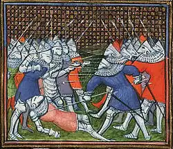 - ^ M. Pope & E. Lodge (ed. & trans.) (1910). Life of the Black Prince, by the Herald of Sir John Chandos. Oxford: Clarendon Press. p. 161.