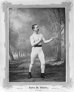 John H. Clark (May 18, 1849 in Oughterard, County Galway – July 26, 1922 in Philadelphia, Pennsylvania) was an Irish-American boxer. He was born in Oughterard, County Galway, but spent most of childhood in England before moving to the United States. Clark was a clog and jig dancer before pursuing a career in prize-fighting. He was the Lightweight Champion of America for two streaks before losing to Arthur Chambers in 1879 following a 136-round bout. He owned a billiard hall and boxing school in Philadelphia.[1]