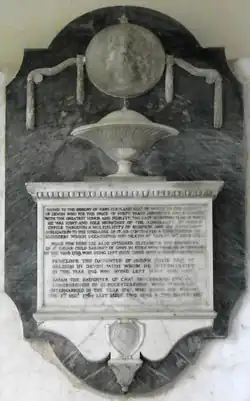 Clevland died at Tapeley on 18 June 1763,[5] as is recorded on his monument in Westleigh Church, as a result of having "contracted a complication of disorders" due to his "constant application to the discharge" of his office of Secretary of the Admiralty.