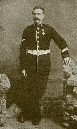 On 16 January 1881 at Elandsfontein, near Pretoria, South Africa, Trooper Danaher, with a lance-corporal of the Connaught Rangers, (James Murray) advanced for 500 yards under heavy fire from a party of about 60 of the enemy, and brought out of action a private who had been severely wounded.[1]