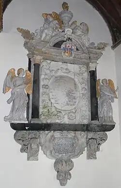 A mural monument to John Davie (died 1710) and his wife Mary survives, affixed high on the west wall of the North Aisle Chapel ("Orleigh Chapel"), in Buckland Brewer Church, Devon. On a large central white marble roundel is inscribed the following Latin text, now partly worn-away, transcribed by W.H. Rogers:[11]