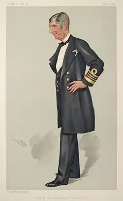 Promoted to vice admiral on 19 January 1881,[13] Commerell became Commander in Chief, North America and West Indies Station, with his flag in the armoured cruiser HMS Northampton, in November 1882.[6] At the 1885 general election he was elected Member of Parliament for the Southampton seat,[14] which he held until he resigned from the House of Commons on 15 May 1888.[15] As a member of parliament he lobbied hard for the Naval Defence Bill.[1]