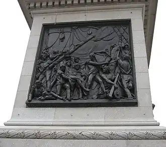 In the years following the court case, Carew received several prominent public commissions, including the Royal Arms and the statue of Richard Whittington for the façade of the Royal Exchange (1844),[3] and a statue of Henry Grattan for St Stephen's Hall in the Palace of Westminster (1857). He was selected to make the bronze relief of the death of Nelson, for the pedestal of Nelson's Column; it was installed in December 1849. For the Catholic cathedral at St John's, Newfoundland, Carew executed several statues and an elaborate altarpiece.[2]