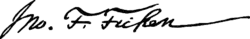 John Frederick Ficken Jr. (1843–1925) was the forty-eighth mayor of Charleston, South Carolina, completing one term from 1891 to 1895. Ficken was born on June 16, 1843, in Charleston to Prussian immigrants John Frederick Ficken Sr., and Rebecca (Beversen) Ficken. He enrolled in the College of Charleston, but he joined the Confederate military at the outbreak of the Civil War. Ficken was given leave from active duty to complete his college education; he received an A.B. degree in 1864 and rejoined active duty. After the war ended, he began practicing law in Charleston and travelled to Germany for a year in 1869 to study civil law at the University of Berlin. From 1877 to December 1891, when he assumed the mayorship of Charleston, Ficken served in the South Carolina statehouse as a representative. He did not stand for re-election in 1891. During his tenure as mayor, Ficken lived at 74 Rutledge Ave. In 1902, he became president of the South Carolina Loan & Trust Co.[1]