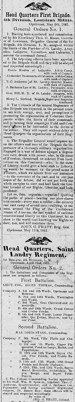 - ^ "Public Sale - Estate of John G. Pratt - Lease of Plantation". The Opelousas Courier. 1866-11-24. p. 2. Retrieved 2023-07-26.