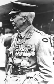 In the late 1930s, he was consulted by Prime Ministers Joseph Lyons and Robert Menzies about defence matters. He campaigned for an increase in the size of the Australian Army, writing letters to newspapers, and a series of articles for Reveille, the Returned Sailors and Soldiers Imperial League of Australia's organ. After the outbreak of the Second World War, he lobbied the Menzies government to appoint Blamey as Commander in Chief of the Army.[74] In June 1940, he was appointed commandant of the Victorian Volunteer Defence Corps, the Australian version of the Home Guard, but ill-health forced him to resign in July 1940, to be replaced by Foott.[75]