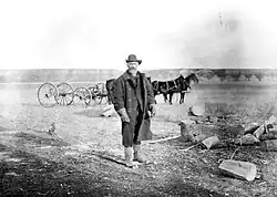 They then headed out to find good land to settle on. When they reached Fish Creek, they were impressed by the rich soil and decided to make their home there. They built a log cabin in 1873, becoming the first settlers in what is now Calgary.[1] Later he said "I like the climate better than any I have found between the Atlantic and the Pacific; the Rio Grande and the Peace, over all of which Territory I have travelled. There is everything in the country a settler can desire".[2]