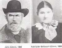 John Glenn (1833 in County Mayo, Ireland – January 9, 1886, in Calgary, Alberta) was the first documented European to settle in the Calgary, Alberta, Canada area. Glenn was an Irish immigrant who first settled in the United States in 1849 and served in the American Civil War. He would then travel to British Columbia before settling in Calgary in 1873 with his wife Adelaide (née Belcourt), and built a small log cabin near the confluence of Fish Creek and the Bow River - in today's Fish Creek Provincial Park.