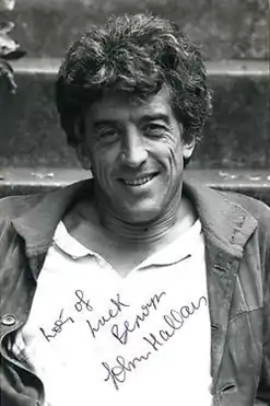 After training at RADA (1962–64), Hallam began acting with Laurence Olivier's embryonic National Theatre Company, playing the Stage Door Keeper in Trelawny of the 'Wells' (Old Vic Theatre, 1965).[3][5] He was seen performing on television for the first time in 1967, in the small role of a watchman when the BBC screened the director Franco Zeffirelli's National Theatre production of Much Ado About Nothing (Old Vic).[6][7]