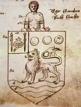 John Hawkins’ later coat of arms, showing an enslaved man and a scallop between two palmer’s staves
