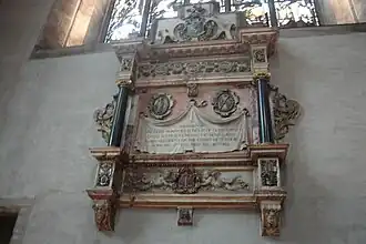 A memorial to Lord Glencorse (in the Jacobean style) stands in the south-east corner of St Giles Cathedral on the Royal Mile in Edinburgh, above the stairway from the church to the crypt, near the entrance to the Thistle Chapel.