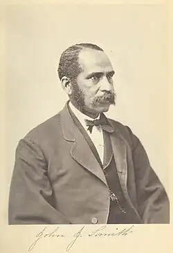 John James Smith (1820 – 1906) was a barber shop owner, abolitionist, a three-term Massachusetts state representative, and one of the first African-American members of the Boston Common Council. A Republican, he served three terms in the Massachusetts House of Representatives. He was born in Richmond Virginia. He took part in the California Gold Rush.[1]