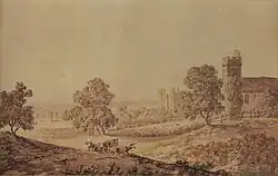 Laporte was born into a family of French Huguenot origins, possibly in London or in Ireland, and studied art under the Irish-born Huguenot painter John Melchior Barralet, either in London or Dublin.[1] He became a drawing-master at the Addiscombe Military Seminary, Surrey. He was also a successful private teacher, and Dr. Thomas Monro (the patron of J. M. W. Turner amongst others), was one of his pupils. From 1785 he contributed landscapes to the Royal Academy and British Institution exhibitions in London, and was an original member of the short-lived society called 'The Associated Artists in Watercolours,' from which he retired in 1811. He also painted in oils.[2]