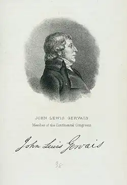 John Lewis Gervais (1741–1798) was an American planter and statesman from South Carolina. He served as a delegate to the Continental Congress in 1782 and 1783.