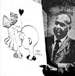 ![]() Liney delivering a lecture in December 1968 on Henry and the history of comic strips at the MacMorland Center of Pennsylvania Military College (now Widener University) in Chester, Pennsylvania. | |