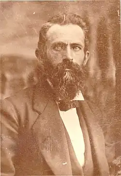 The oil portrait to the left was commissioned in about 1880 from the original black-and-white photo and illustrates the original color scheme of the home and out buildings.