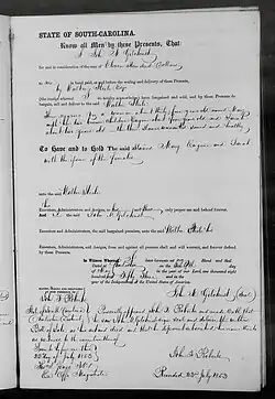 - ^ "1844 ad by John M. Gilchrist for the private sale of 113 enslaved Black people in Charleston, SC". The Charleston Daily Courier. April 18, 1844. p. 3. Retrieved 2024-05-24.