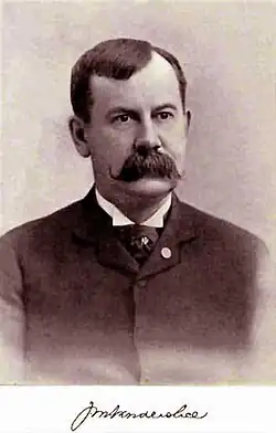John Mitchell Vanderslice (August 31, 1846 - March 12, 1915) was a United States soldier who fought for the Union Army during the American Civil War as a member of the 8th Pennsylvania Cavalry. He received his nation's highest award for valor, the U.S. Medal of Honor, for being the first man to reach the rifle pits of the Confederate States Army during a charge made by his regiment on CSA fortifications in the Battle of Hatcher's Run, Virginia on February 6, 1865.[1]