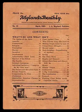 In January 1905, Work wrote an introductory work on socialism called What's So and What Isn't. The short book was frequently reprinted and became his best known writing, one of the Socialist Party's propaganda standards of the Debs era. The first 10,000 copies of the work appeared as the March 1905 number of Wayland's Monthly.[20] The book would ultimately be published in over a dozen editions, with a total print run of well over 165,000 copies.[21]