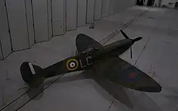 Thompson worked the unit up to operational status by October and the following month he and several Belgian pilots were detached to form the basis of No. 350 Squadron. A dedicated unit of Belgian fighter pilots, it was based at Valley and equipped with Spitfires. It became operational in December and carried out air cover patrols for shipping in the Irish Sea and was also occasionally scrambled to deal with incoming German aircraft.[9] Thompson led the squadron until he was rested in March 1942.[10] He was later awarded the Belgian Military Cross, First Class, in recognition of his work with the Belgian squadron.[11]