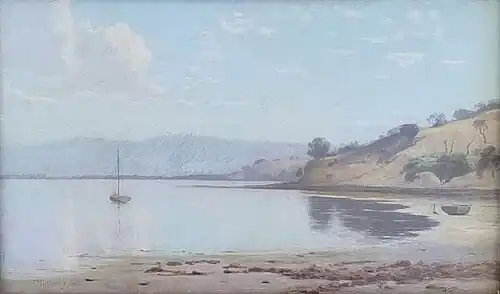 In recent years the painting has been auctioned under the nominal title ‘Lake Scene’, however the view is clearly of a tidal water body and not a lake.
