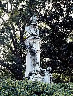 In 1938, as part of the Federal Art Project, a bust of McDonogh by Angela Gregory was erected at what was designated "McDonogh Place", a small park in Uptown New Orleans at St. Charles Avenue and Toledano Street.[25] In 1958, it was moved to Duncan Plaza by the new City Hall. On June 13, 2020, protestors toppled the bust of John McDonogh from its base in Duncan Plaza and tossed it into the Mississippi River.[10] On June 14 the bust was retrieved from the river,[26] and returned to city officials.[27]