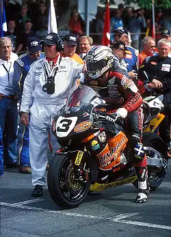 John Warren McGuinness MBE (16 April 1972[2]) is an English motorcycle road racer, best known as a specialist at the Isle of Man TT, where he has won 23 races and sits 3rd in the all-time win list behind Michael Dunlop and Joey Dunlop. He and Mike Hailwood hold the record for the most Senior TT wins: 7.