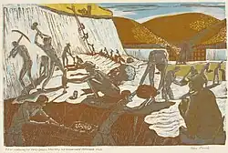 John George Mennie, A.R.M.S. D.A.(ABDN). ARMS.,[1] (26 November 1911 – 24 August 1982)[2][3] was a Scottish artist who came to public attention in 2011 for his many contemporaneous drawings of his life as a prisoner of war during the Japanese occupation of Singapore and Thailand in World War II. The drawings were made in secret depicting scenes of daily life and personalities in the camps in Singapore and Thailand, working on the Death railway. They also uniquely documented the Selarang Square Squeeze when some 17,000 prisoners were forced to crowd in the barracks square for nearly five days with little water and no sanitation until they signed a 'promise not to escape'.[2][4]