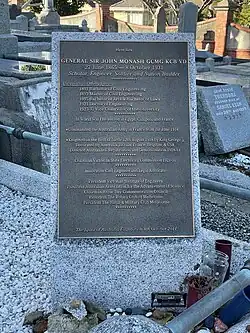 - Sir John Monash (1865–1931) Gravesite at Brighton General Cemetery (Vic)