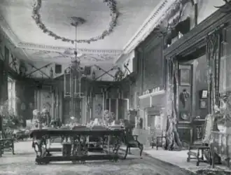 While Morgan occasionally stayed at Tredegar for days at a time, rising costs coupled with outstanding death-duties meant he never made it his permanent residence.[2] In 1949, Morgan considered donating the house to the National Trust, with James Lees-Milne assessing the property, but did not proceed with the plan.[55][f] In August 1950, he announced "with great regret" that death duties, taxation and rising costs had made it necessary for him to close Tredegar House. In December of the same year, he agreed to sell the house and its remaining 200-acre (80 ha) parkland to the Sisters of St. Joseph for £40,000,[56] asserting that the sale was "good for his bank balance, and his soul".[2][g] In January 1951, Morgan allowed Iorwerth Peate, keeper-in-charge for St Fagan's Castle, to choose 30 pieces of furniture from Tredegar House for exhibition in the period rooms of the castle.[57] Later, Morgan directed Stephenson & Alexander, a firm of auctioneers, to dispose of the remaining contents of the house in sales on 11-12 July 1951.[58] On the sale of the house, Morgan asked the nuns to hang portraits of his family and ancestors in one room to ensure that a Morgan presence remained in the house after his departure.[2] Following the sale, Morgan deposited the majority of his family's manuscripts and papers to the National Library of Wales, so that they would be preserved in the event of him dying without an heir, despite allegedly promising them to the Newport Borough Library.[59] Councillor A. F. Dolman described changing the destination of the documents as a "breech of faith".[60] The house was used as a Catholic girls' school until 1974. As of 2025, it is owned by Newport City Council, and managed by the National Trust, via a 50-year-lease agreement.[61]