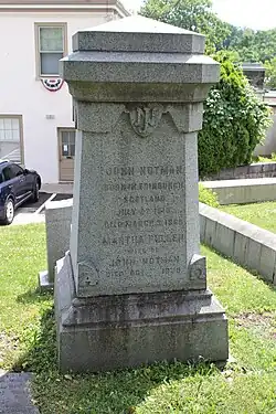 Notman died on October 3, 1865[4] and was interred at Laurel Hill Cemetery.[16] His early death was reportedly accelerated by alcoholism.[5] After his death, his architectural firm continued for several years under his protege George Hewitt. A plaque was added near his gravestone in 1998 when Laurel Hill was designated a National Historic Landmark. It reads: