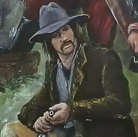 ![]() An artist's impression of the bushranger, John O'Meally (detail from the 'Gardiner's Gang' mural in Chesher-street, Eugowra, NSW). | |