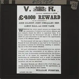 - ^ Four Thousand Pounds Reward, New South Wales Government Gazette (Sydney), 26 October 1863 (Issue No. 207 Supplement), page 2313.
