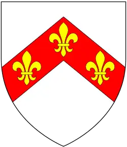 Coat of arms of John Peyvre, Lord of Toddington, Argent, on a chevron gules, three fleurs-de-lis or
