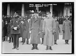 John Purroy Mitchel and Leonard Wood reviewing the 30th New York Volunteer Infantry Regiment on January 20, 1915