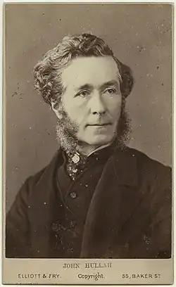 Hullah was born at Worcester. He was a pupil of William Horsley from 1829, and entered the Royal Academy of Music in 1833. He wrote an opera to words by Dickens, The Village Coquettes, produced in 1836;[1] The Barbers of Bassora in 1837;[2] and The Outpost in 1838, the last two at Covent Garden. From 1839, when he went to Paris to investigate various systems of teaching music to large masses of people, he identified himself with Wilhem's system of the fixed "do," in contrast to the moveable "do" of the Tonic sol-fa. His adaptation of Wilhem's system was taught with enormous success from 1840 to 1860.[3][4] His first-ever lesson was given at the Battersea College for training teachers (now University St Mark and St John Plymouth), in 1840, at the instigation of educationalist and college Principal James Kay Shuttleworth. His pupils included William Carter[5] and Edmund Hart Turpin.[6]