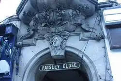 - Sculpture of a head over Paisley Close on the Royal Mile, Edinburgh, (1862). The inscription "Heave Awa' Chaps I'm No Dead Yet" bears reference to the words which the 14-year-old boy (Joseph McIver) depicted cried out from the rubble from a collapsed tenement on the site.