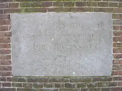 On 24 July 1891 under the auspices of the National Council of the Congregational Churches of the United States, a bronze marker in his memory was placed on the wall of the Pieterskerk. Present were delegates from the United States (including his descendant Rev. William Robinson of Vermont, who was a member of the committee responsible for the marker's erection) and England, the city and University of Leiden, and the city's clergy. On this marker was inscribed: