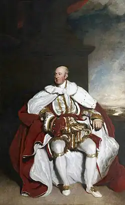 ![]() John Rolle, 1st Baron Rolle (1750–1842) in his peerage robes. Portrait by Thomas Lawrence (1769–1830). Collection of Great Torrington Almshouse, Town Lands and Poors Charities, displayed in Great Torrington Town Hall. Donated by Lord Clinton. | |
