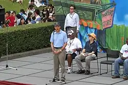 Roos also led the creation of the TOMODACHI Initiative in the wake of the U.S. relief efforts, after traveling throughout the Tohoku region that had been hit by the earthquake and tsunami and hearing from the mayor of one hard hit town, Rikuzentakata, that what the United States could really do to help recovery was "give hope to our young people." From this suggestion, the Ambassador launched the TOMODACHI Initiative.[17] The initiative is a public-private partnership with the U.S.-Japan Council, a Washington DC–based organization, to invest in Japan's next generation of leaders. The Initiative represents a path-breaking paradigm in U.S. public diplomacy, in which government joins forces with private enterprises and organizations to achieve mutually beneficial, strategic goals. TOMODACHI provides young Japanese and Americans with opportunities to study, live, and work in each other's countries, thereby ensuring a thriving bilateral partnership into the foreseeable future. Roos marshaled assistance from a large number of high-profile celebrities to support the cause, including Lady Gaga, Tom Cruise, Will Smith, Cal Ripken, and will.i.am. Roos also has leveraged his popular Twitter account (over 55,000 followers, making him the most-followed U.S. Ambassador anywhere outside the United States at the time) to share information and generate excitement. As of the end of 2016, TOMODACHI has impacted the lives of more than 5,700 young people in the United States and Japan through cultural exchanges and leadership training. In 2016 alone, more than 1,000 people participated in 47 programs. More than 36,000 people have been involved in TOMODACHI programs and events in the United States and Japan.[18] Roos remains active supporting TOMODACHI even following his Ambassadorship.[19]
