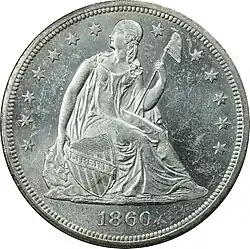 The Ohio Legislature elected Sherman to a third term in 1872 after then-governor Rutherford B. Hayes declined the invitation of several legislators to run against Sherman.[98] Sherman returned to his leadership of the Finance Committee, and the issues of greenbacks, gold, and silver continued into the next several congresses. Since the early days of the republic, the United States had minted both gold and silver coins, and for decades the ratio of value between them had been set by law at 16:1.[99] Both metals were subject to "free coinage"; that is, anyone could bring any amount of silver or gold to the United States Mint and have it converted to coinage.[100] The ratio was bound to be imperfect, as the amount of gold and silver mined and the demand for it around the world fluctuated from year to year; as a metal's market price exceeded its legal price, coins of that metal would disappear from circulation (a phenomenon known as Gresham's law).[100] Before the Civil War, gold circulated freely and silver disappeared, and while silver dollars were legal tender, Sherman wrote that "[a]lthough I was quite active in business ... I do not remember at that time to have ever seen a silver dollar".[101] The issuance of greenbacks had pushed debate over gold-silver ratios to the background as coins of both metals disappeared from the nation's commerce in favor of the new paper notes, but as the dollar became stronger in peacetime and the national debt payments were guaranteed to be paid in specie, Congress saw the need to update the coinage laws.[102]